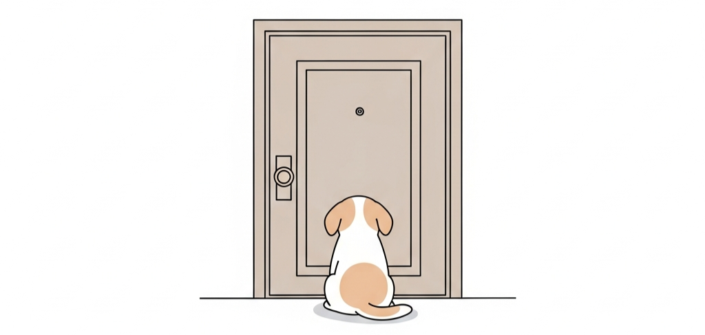 「外出したとき」だけでなく、視界から消えるだけで反応が出る場合は、重度の分離不安の可能性が高いサインです。トイレに行くたびについてくる、ドアを閉めると引っかく・吠える——これは「甘え」の範囲を超えています。